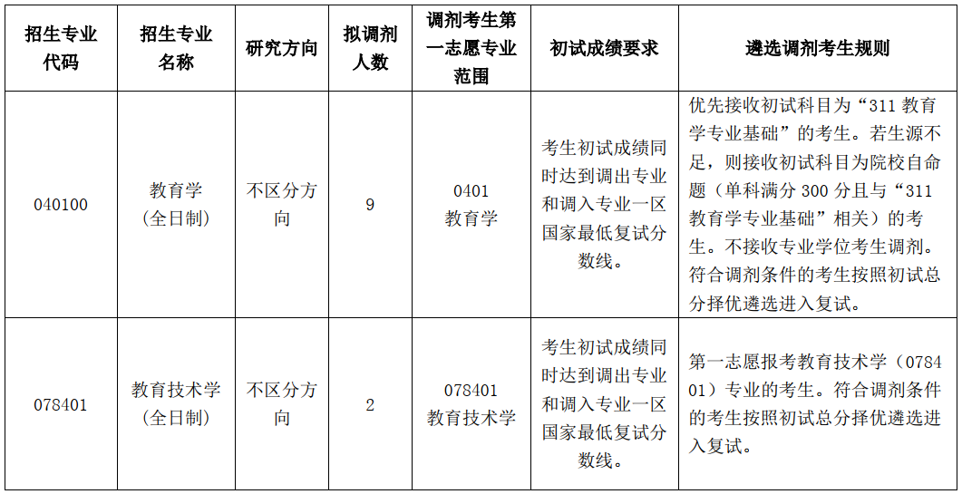 根据2026年学校招生计划和一志愿拟录取情况,我院教育学、教育技术学专业有部分调剂名额。按照《伟德国际1946源于英国2026年硕士研究生招生调剂工作办法》要求,现将相关信息公告如下: